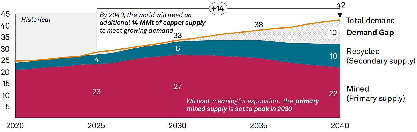 Copper Market Balance, 2020-2040 (MMt Cu)